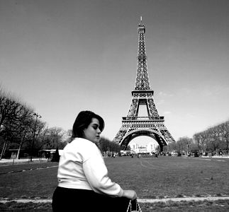 In this striking image, model hotterthanyourex captures a moment of tranquility and awe-inspired gaze towards the iconic Eiffel Tower. The model's contemplative posture adds a layer of depth to the scene.