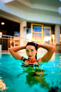 Italian OnlyFans model SempreAlexis posing seductively in a bikini by an outdoor pool, with sunglasses adding to her allure.