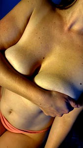 The image shows a person posing with their breast resting on the chest. The background is not clear due to the focus on the model. They appear to be a young adult female, and the style of the photo suggests it may be intended for an OnlyFans profile.