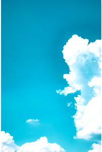 A captivating advertisement for travel, showcasing the beauty of a clear blue sky with fluffy clouds and an image of a woman's face in the background, evoking a sense of wanderlust.