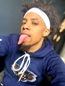 Model Shy, aka 'Not Shy', is known for his daring and provocative Instagram content from Atlanta Georgia. He's seen here with his tongue out, pushing boundaries of social media norms. His confident expression and unique style make him stand out in the world of influencers.