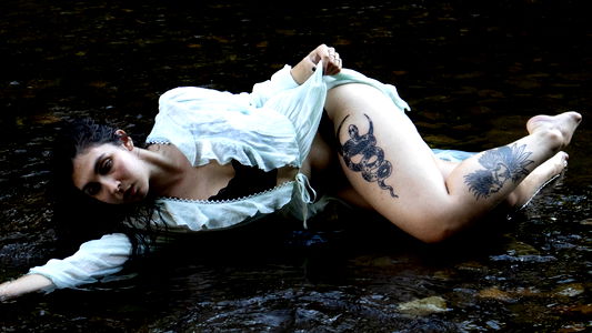 Snow Soir is a popular OnlyFans model, known for her edgy and adventurous photoshoots. In this particular image, she's striking a pose on the riverbank, embodying the allure of nature and the seductive power of human beauty.