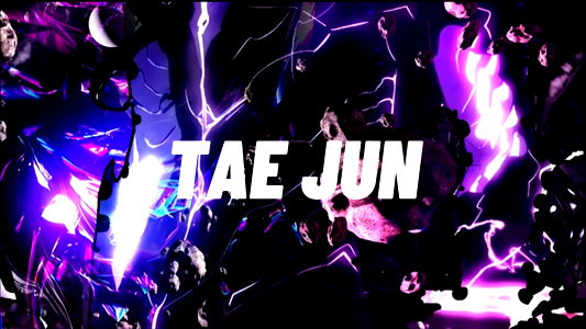A professional-looking portrait of Tae Jun, featuring urban fashion and a dark background. The model poses with confidence, showcasing their unique style.