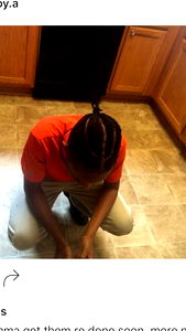 In this image, the OnlyFans model is captured in a candid moment as she kneels on the kitchen floor. She's wearing casual attire and appears to be in the middle of an activity, perhaps cooking or organizing. The kitchen around her is well-lit with warm tones, suggesting that it's an inviting space. The photo captures R from a slightly elevated angle, adding an air of intimacy to the scene. The photo seems to have been taken casually and spontaneously, making it all the more charming.