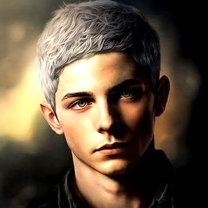 This is a digital artwork featuring the striking model known as SDC. He exudes an air of mystery and allure, his silver hair adding to his enigmatic charm. The artwork captures him in a thoughtful pose against a dark backdrop, highlighting his unique features and intense gaze.