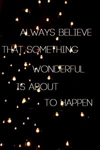 This is a motivational poster featuring an inspirational quote about believing in something wonderful and being excited for the future. The background consists of string lights which adds a warm, cozy ambiance to the overall design.