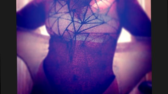 Tha Fav Rose, a Wisconsin/ Minnesota model with an OnlyFans account, is known for her unique tattoos. In this image, she's showcasing a black lingerie set with visible tats and a playful pose against a bathroom backdrop. The image conveys a sense of fun and individuality.