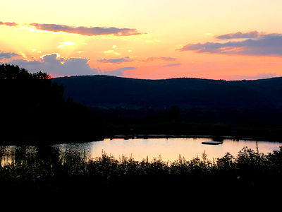 A tranquil view of a lake at dusk with silhouettes against the evening sky, captured by Onlyfans model Thiccc Thighs.