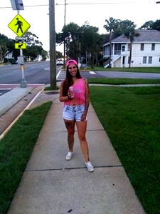 A young woman with tattoos on her arm and an eye-catching makeup look. She's posing for a selfie in what appears to be a casual setting.
