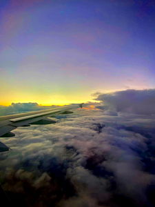 A captivating image of an airplane flying through a cloudy sky, as seen from the window seat. The perspective offers a glimpse into the beauty and complexity of aviation.