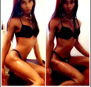 TS Princess, a popular OnlyFans model and fitness enthusiast, shares her workout progress on Instagram. She is showcasing her toned physique in a black bikini against the backdrop of a bathroom sink. The image features two photos: one of her taking a selfie in front of the mirror with her phone and the other showcasing her physique from behind. The photo captures her dedication to fitness and the progress she's made over time.