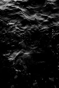 A dramatic black and white photo of a rough sea with dark, moody tones.