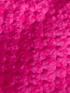 A young adult woman with painted toenails and polished nails, displaying her painted toes. She is seated on a surface adorned with pink confetti. Behind her, a green inflated ball floats.