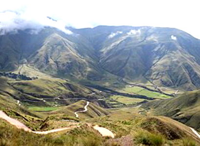 A breathtaking panorama showcasing the beauty of nature with a stunning mountain range and a serene village. This picturesque landscape offers an idyllic view to appreciate the grandeur of the earth.