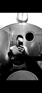 Meet Kostas, a dedicated fitness enthusiast who likes to maintain his physique. He is seen in the mirror of a small restroom, capturing his reflection with his phone. His dedication to health and fitness shines through in this image.