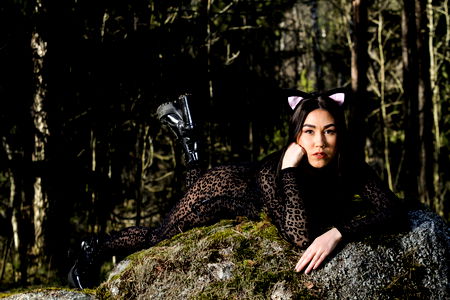 An Onlyfans model strikes a fun pose in her bunny costume, creating a playful and alluring vibe. She has set up an inviting backdrop for her photoshoot.