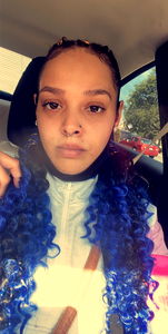 Monica, an Onlyfans model with vibrant blue hair, is seen here posing for a selfie. Her style radiates confidence and individuality, making her stand out from the crowd.