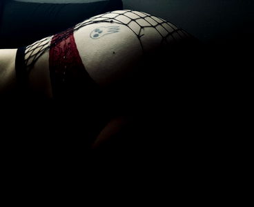 The image showcases the model witchycal, from The Netherlands, in an intimate pose. She's wearing a vibrant red lingerie set, paired with black fishnet stockings. Her back is turned to the camera, allowing us to appreciate the details of her ensemble and the atmosphere created by this intriguing photo. The image exudes a sense of allure and sophistication, making it an appealing choice for those interested in fashion and modeling.