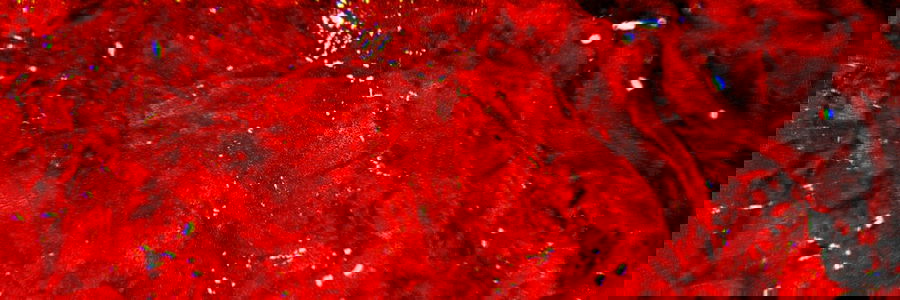 A close-up of red paint on a gray surface, with the focus on the textures and contrasts.