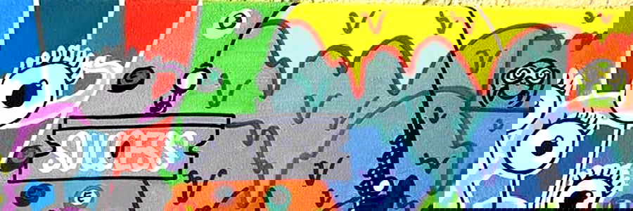 A model posing against a colorful backdrop featuring cartoon elements, including a graffiti-style sign that says 'success'. The backdrop is vibrant and eye-catching, making the model stand out. It's a fun and creative setup for a photoshoot.