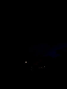 The image appears to be a cropped shot, possibly taken from a car window or at night outside. It's a vertical split photo that shows a dark sky on the left and some silhouettes and lights on the right. The image does not provide clear details about the scene.