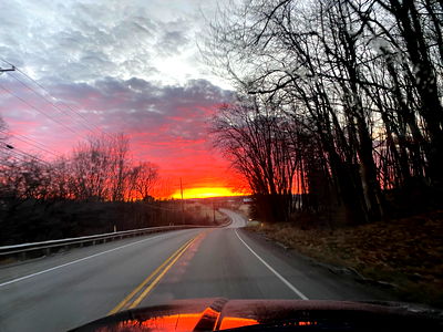 A person is standing outdoors, showing off their outfit. They are holding onto a handrail for balance and appear to be taking a selfie with one hand while the other holds a bag. The background is an open parking lot with vehicles parked in it.