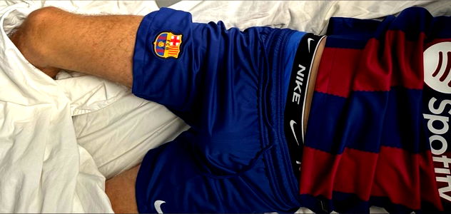 In this image, Zachary Lodge is seen in a photoshoot for OnlyFans. He is captured in an introspective pose with his head resting on his hand while lying on a bed with a white sheet.